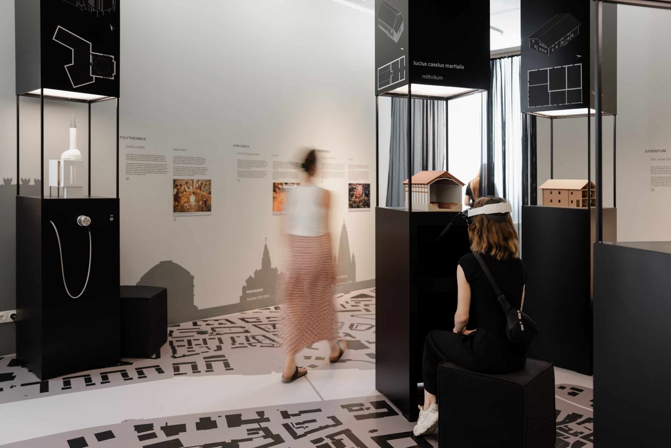 Im zweiten Obergeschoss begleiten Besucher:innen die sechs Charaktere bei ihrer Ankunft in Konstanz. Im Zentrum stehen religiöse Stätten, die Orientierung, Gemeinschaft und Halt bieten. Die Charaktere erzählen den Besucher:innen von ihren Erfahrungen an den jeweiligen Stätten. Mithilfe von VR-Brillen können Besucher:innen drei der Kultstätten selbst erkunden.